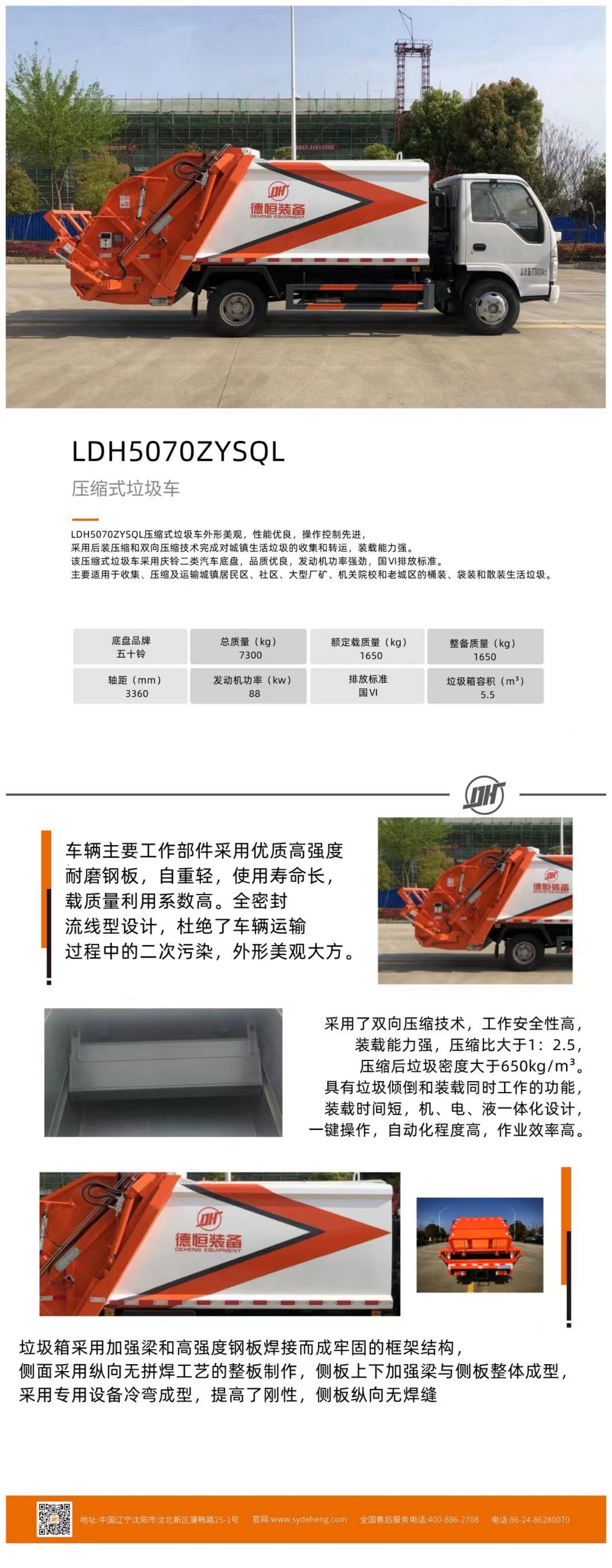 适用于收集、压缩及运输城镇居民区、社区、大型厂矿、机关院校和老城区的桶装、袋装和散装生活垃圾