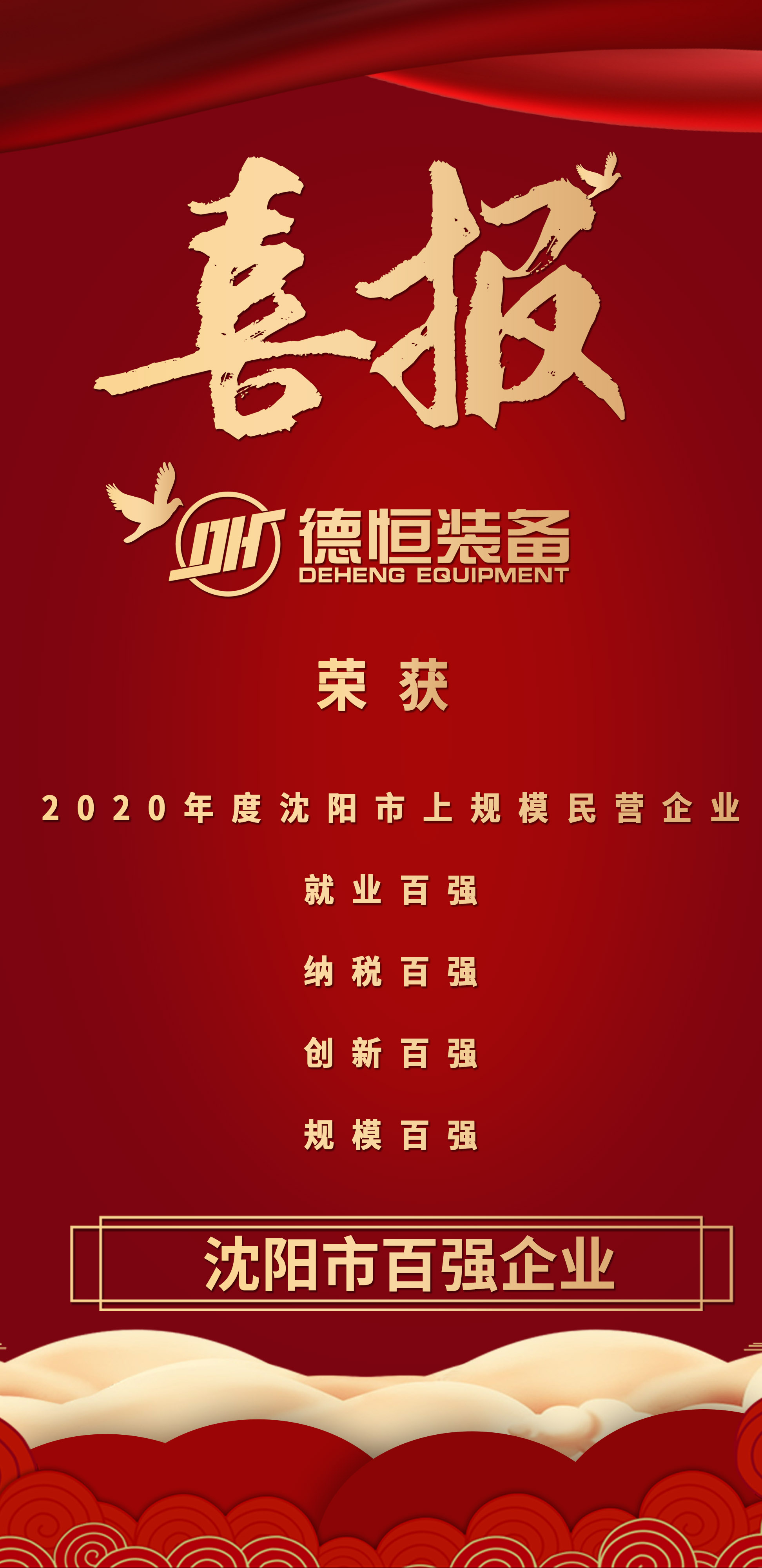 喜报!德恒装备分别荣获沈阳市就业、纳税、创新、规模百强
