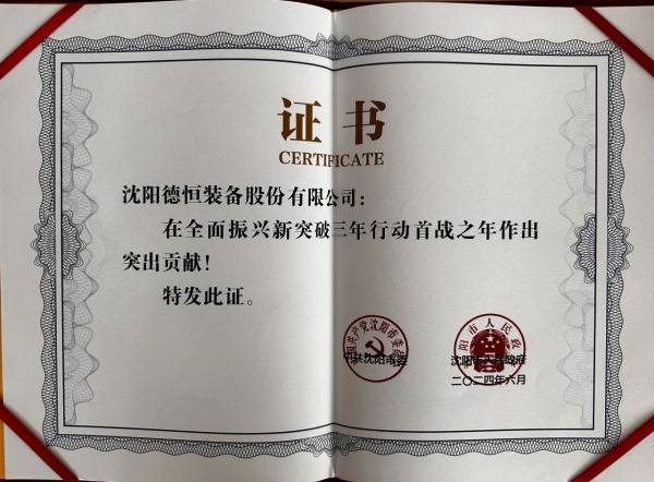 德恒装备作为一家沈阳本土生产型企业,成立至今已有二十余年的发展历程。这些年来,德恒装备始终坚持以市场为导向、以创新为驱动、以服务为根本,注重提升企业核心竞争力,先后研发出具有国际先进水平的关键技术;产品市占率国内领先。公司先后获评国家级专精特新小巨人企业、省级绿色工厂、省级数字车间、辽宁省制造业单项冠军企业等荣誉。这些成绩的取得,得益于中央及省市惠企政策的大力扶持,得益于各级党委、政府一如既往的大力支持,得益于沈阳雄厚的工业底蕴完善的产业配套和良好的营商环境。