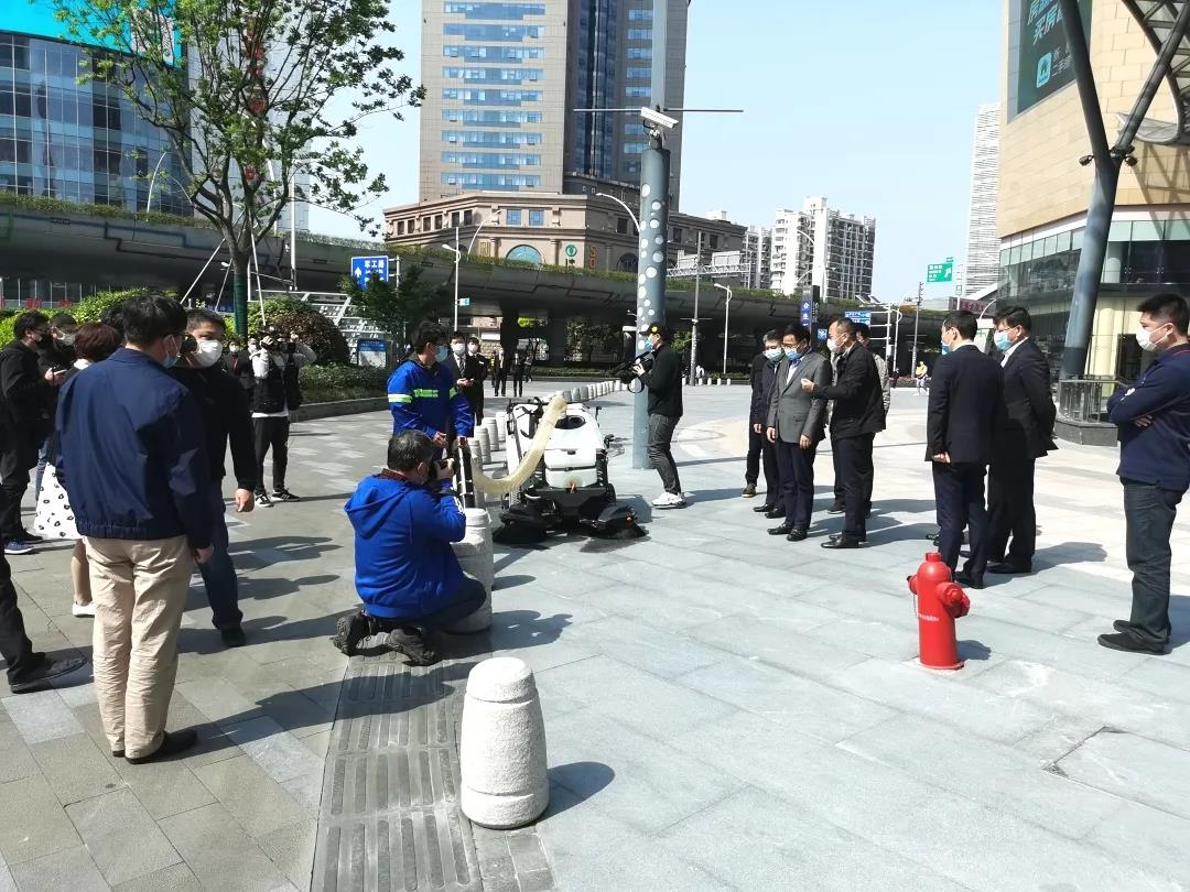 随着上海不断扩大精细化管理范围提升能级别,近日,上海市副市长汤志平一行到杨浦五角场商圈开展道路精细化环卫作业试点调研工作,旋风电动清扫机符合上海精细化作业的要求,在上海“席地可坐”的这一要求下发挥了良好的作用,将精细化作业与绿色环保能源兼顾做到极致优化。